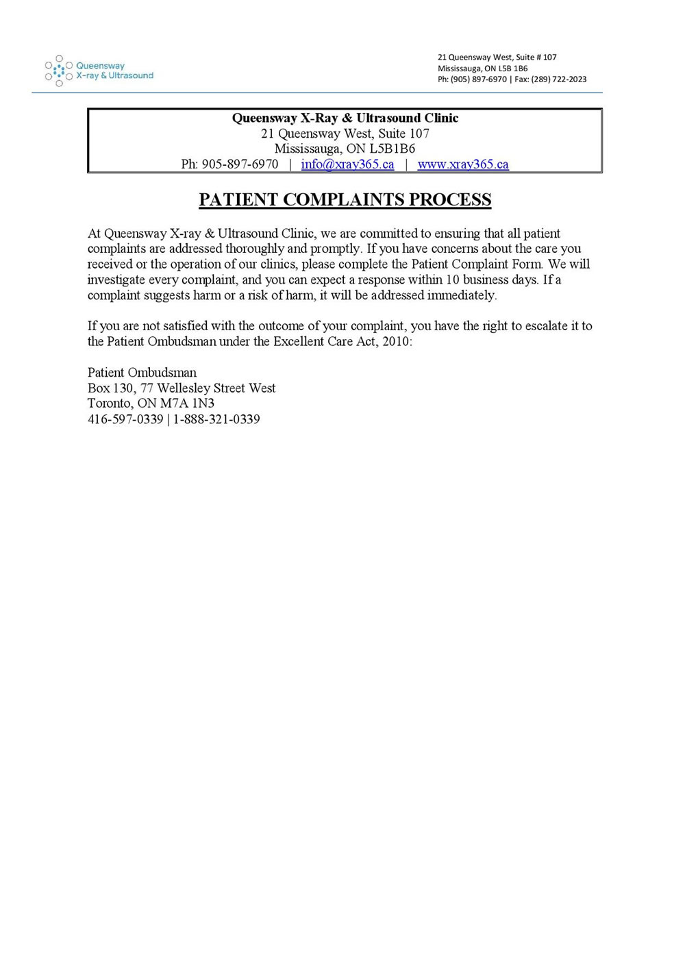 Patient complaint process